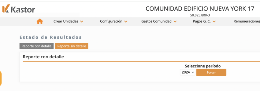 El Estado de resultados de Kastor consolida el comportamiento financiero-operativo de la comunidad, transparentando el resultado del ejercicio, aún cuando las comunidades no tienen utilidades al no generar ganancias por sus operaciones.