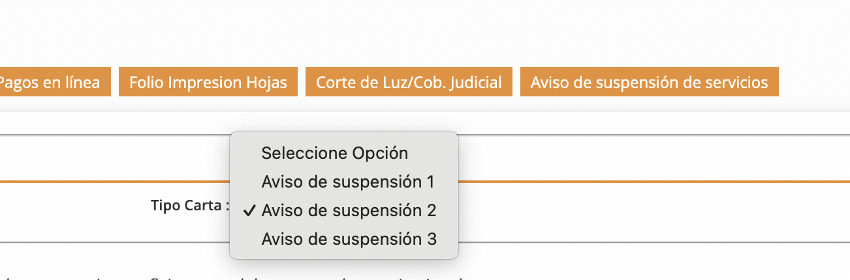Esta importante herramienta de gestión que hasta hace poco se llamaba Carta de corte, ahora lleva el nombre de Aviso de suspensión de servicios y está disponible desde el módulo Configuración, submódulo Datos comunidad, sección Aviso de suspensión de servicios.