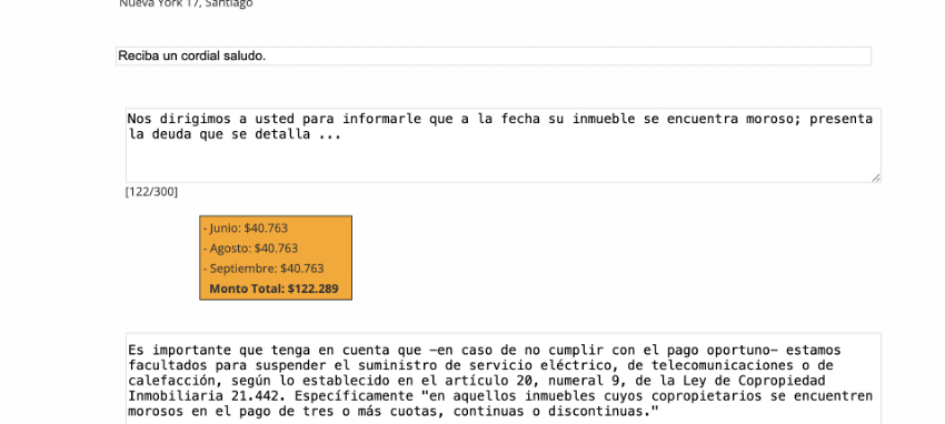 Actualizamos el contenido del aviso de suspensión de servicios que utilizas para notificar a los residentes que se encuentran morosos la necesidad de que se pongan al día con sus deudas, y las facultades que le otorga la Ley 21.442 a la administración para minimizar la morosidad en la comunidad.